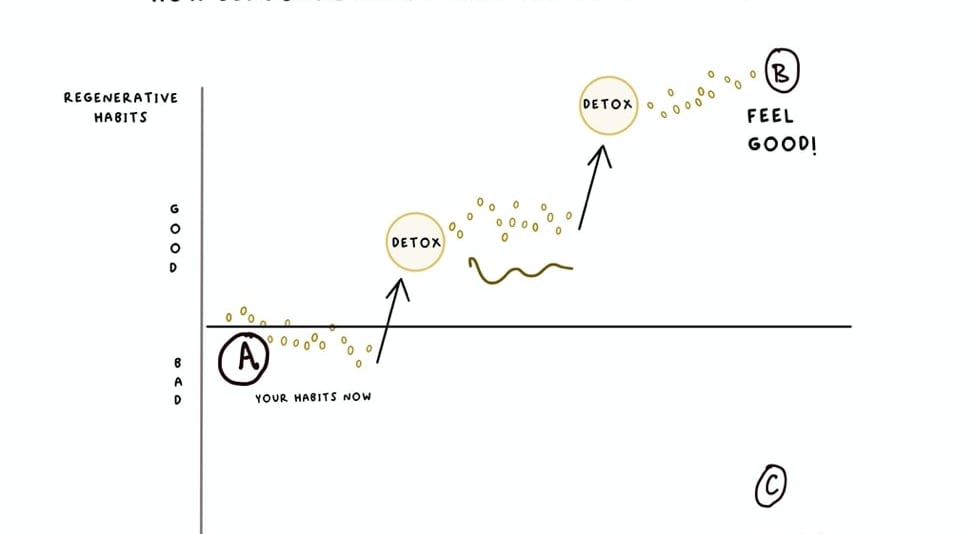 Detox offers you a chance to pause, rejuvenate, heal, and reset. By taking time out twice a year, you can realign your habits with who you are now and who you want to become.