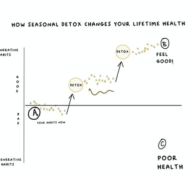 The time it’s easiest to detox? The change of seasons. It’s the easiest time to dump off what your body and mind don’t want to keep from last season. Detox becomes a seasonal habit. You enter the next season refreshed, with smarter habits and a renewed, refined sense of purpose.